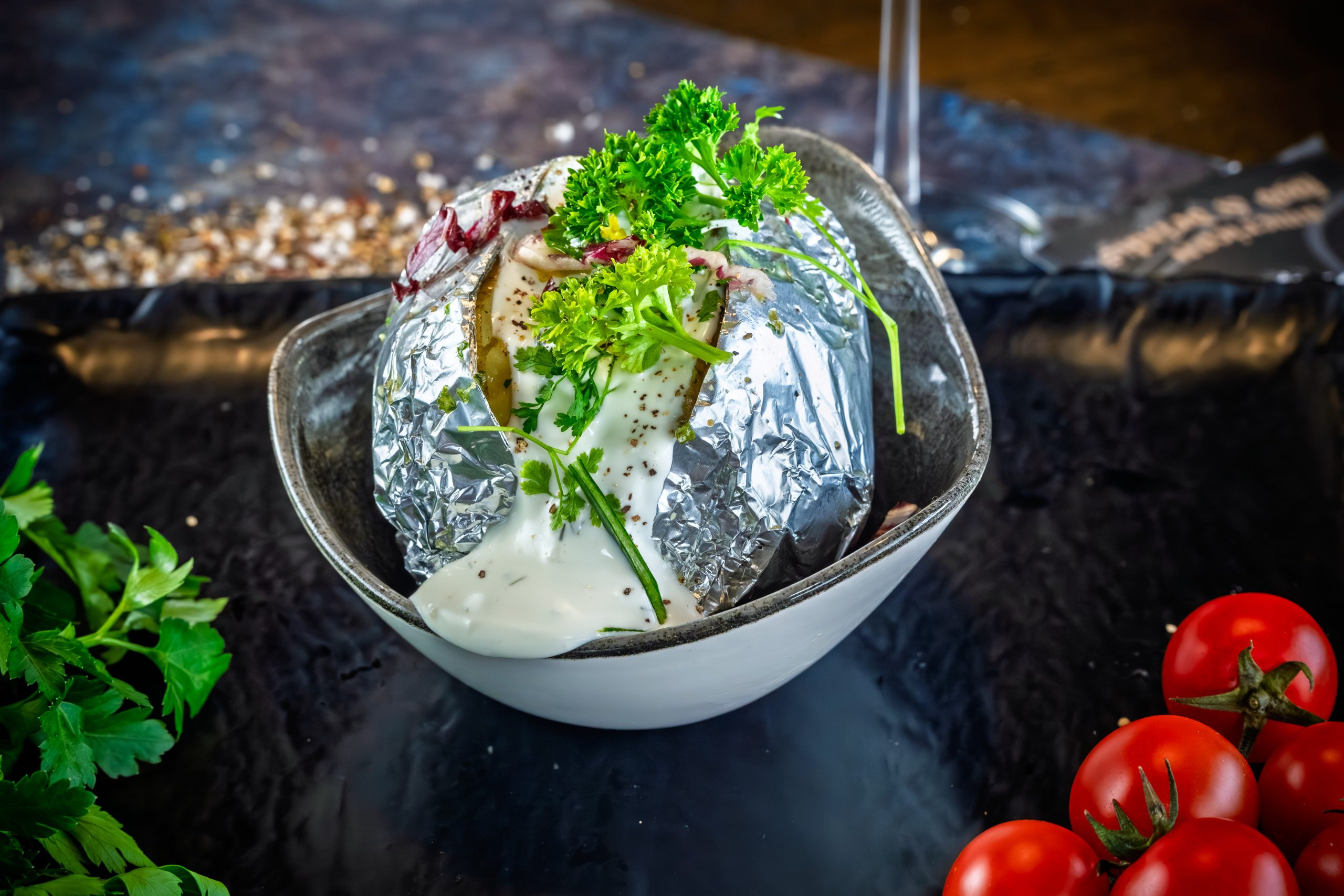 gebackene Ofenkartoffel mit Sauerrahm